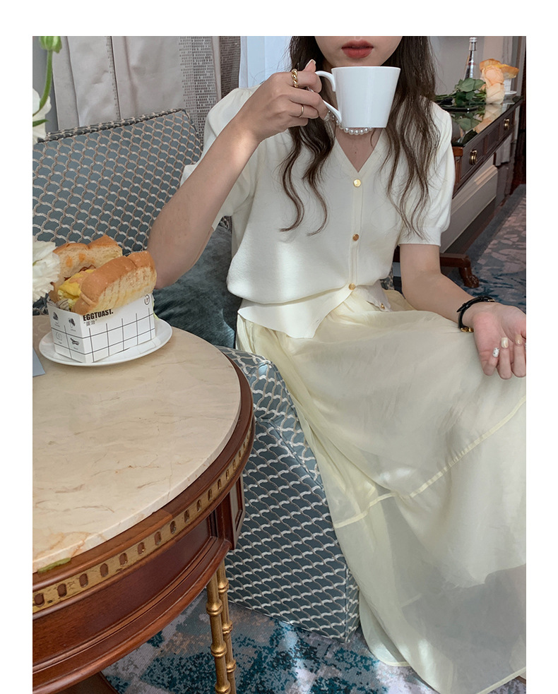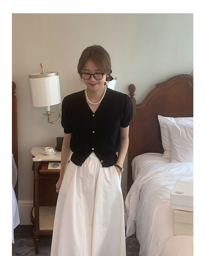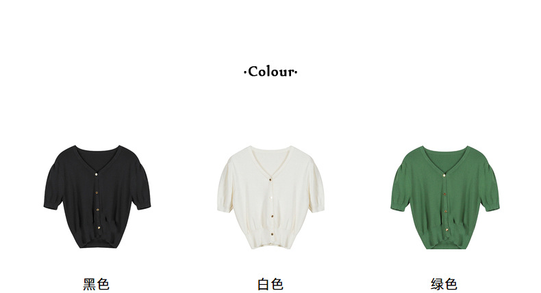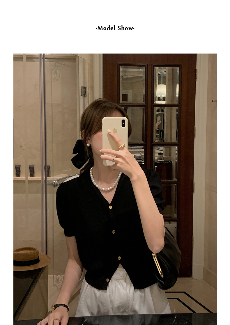 泡泡袖短袖针织上衣
