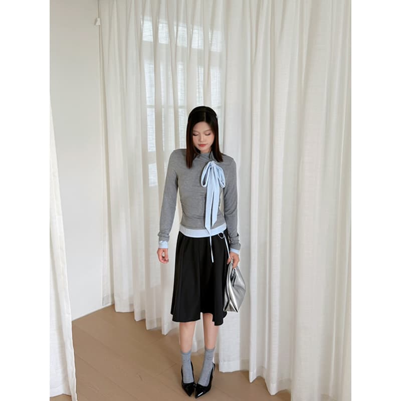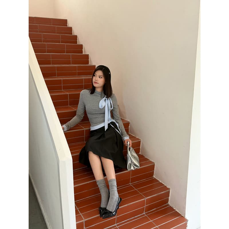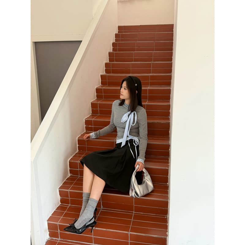 蝴蝶结上衣+百褶高腰半身裙套装